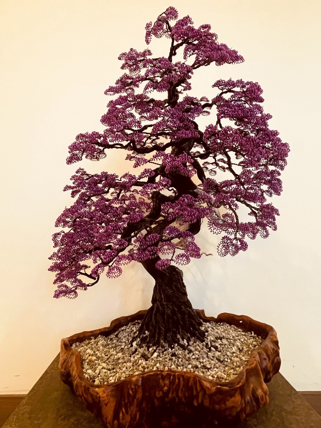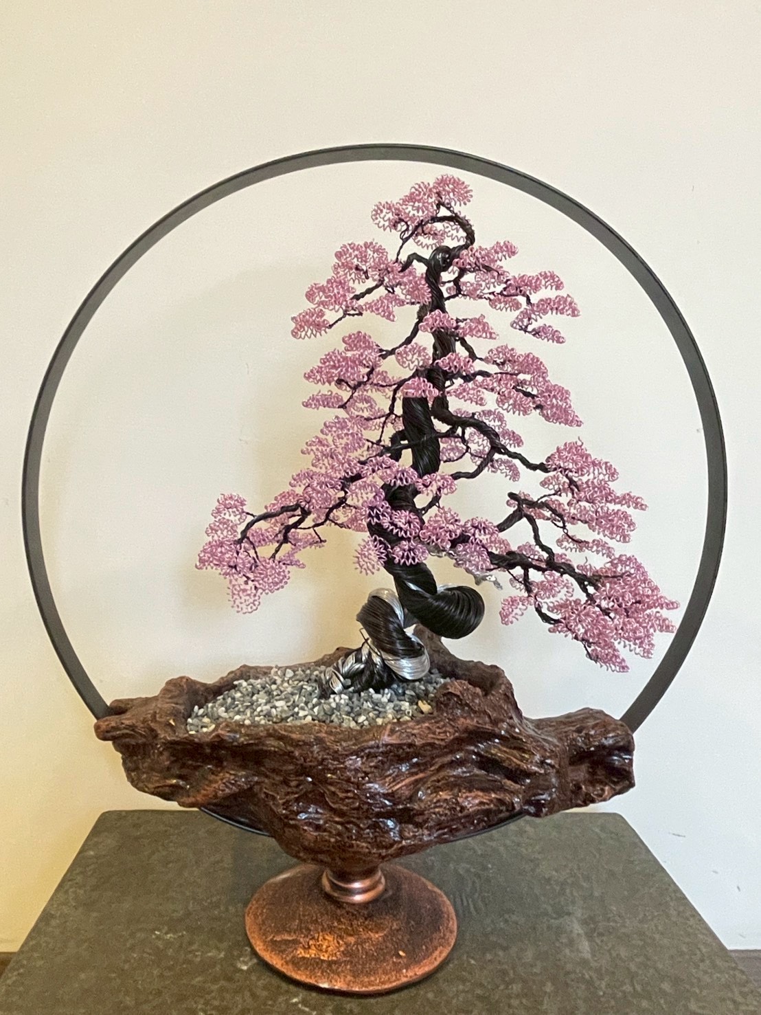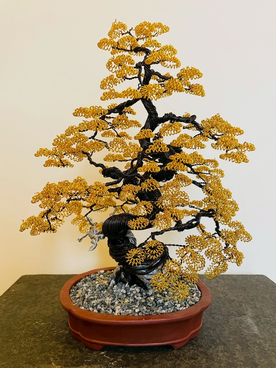 「松柏長青」取松柏象徵四季長青、堅毅長存之意,以繁複精巧的鋁線纏繞工藝呈現出生命的律動與自然的層次感。枝葉層疊、姿態蒼勁,宛如微縮盆景,卻凝結了時光,不凋不枯,成為可長存於生活空間中的自然象徵。