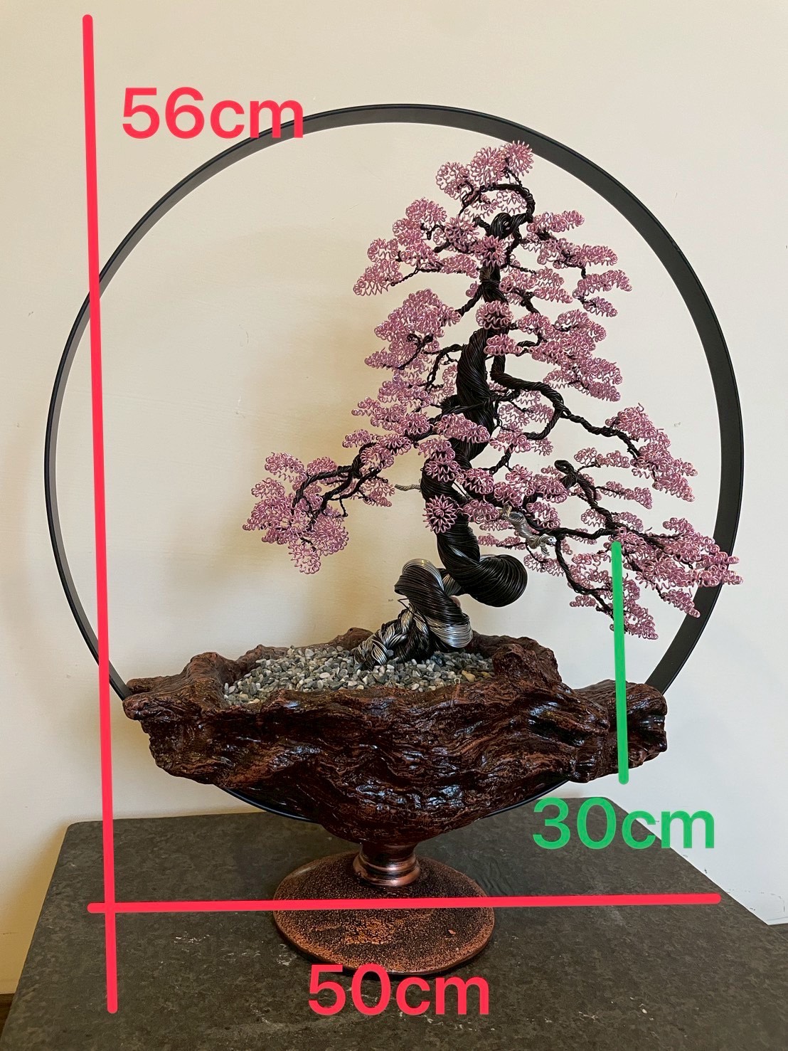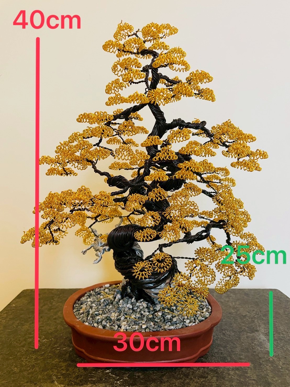選用金屬鋁線為主材,搭配自然碎石盆景設計,不僅展現出金屬與自然意象的對比之美,也象徵「金生水、財富長流」,非常適合作為風水擺設、空間裝飾或祝賀禮品。